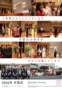 卒業生の皆さん、ご卒業誠におめでとうございます。これまでの努力と経験を胸に、新たなステージへと踏み出される皆さんの姿に、大きな成長を感じました。