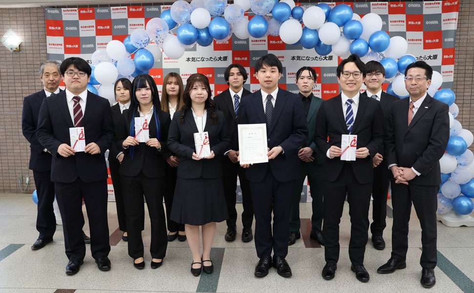 当校にて表彰式を行い、副賞として10万円および旅行券3万円などが授与されました。企業の皆様から高い評価をいただいたことに、学生たちも大きな喜びと達成感を感じていました。